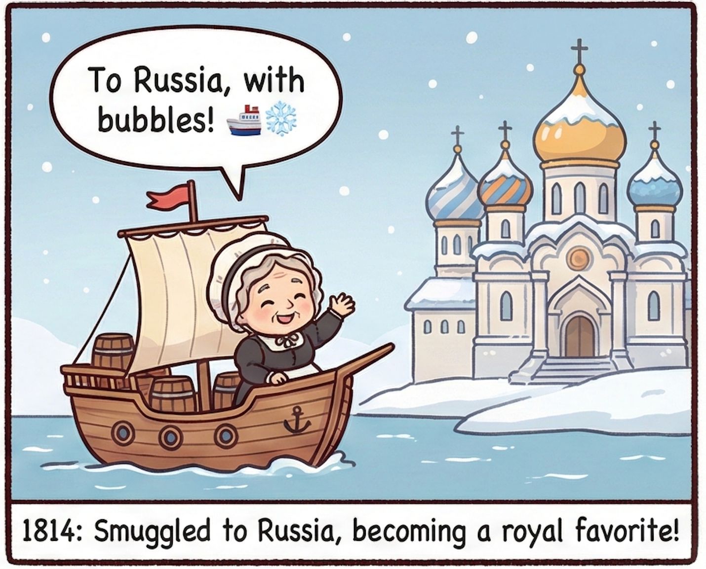 With her business on the brink of collapse due to trade blockades during the Napoleonic Wars, she took a massive risk. She smuggled 10,550 bottles of her famous 1811 "Comet Vintage" onto a ship bound for St. Petersburg. She beat her competitors to the Russian court, where the Czar and nobility (starved of luxury) declared it the only wine they would drink. This daring move saved the company and conquered the Russian market.