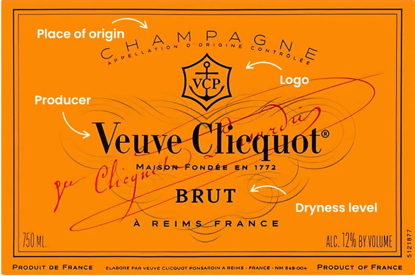 The iconic yellow label was created to distinguish her drier (Brut) champagne from the sweeter versions that were common at the time